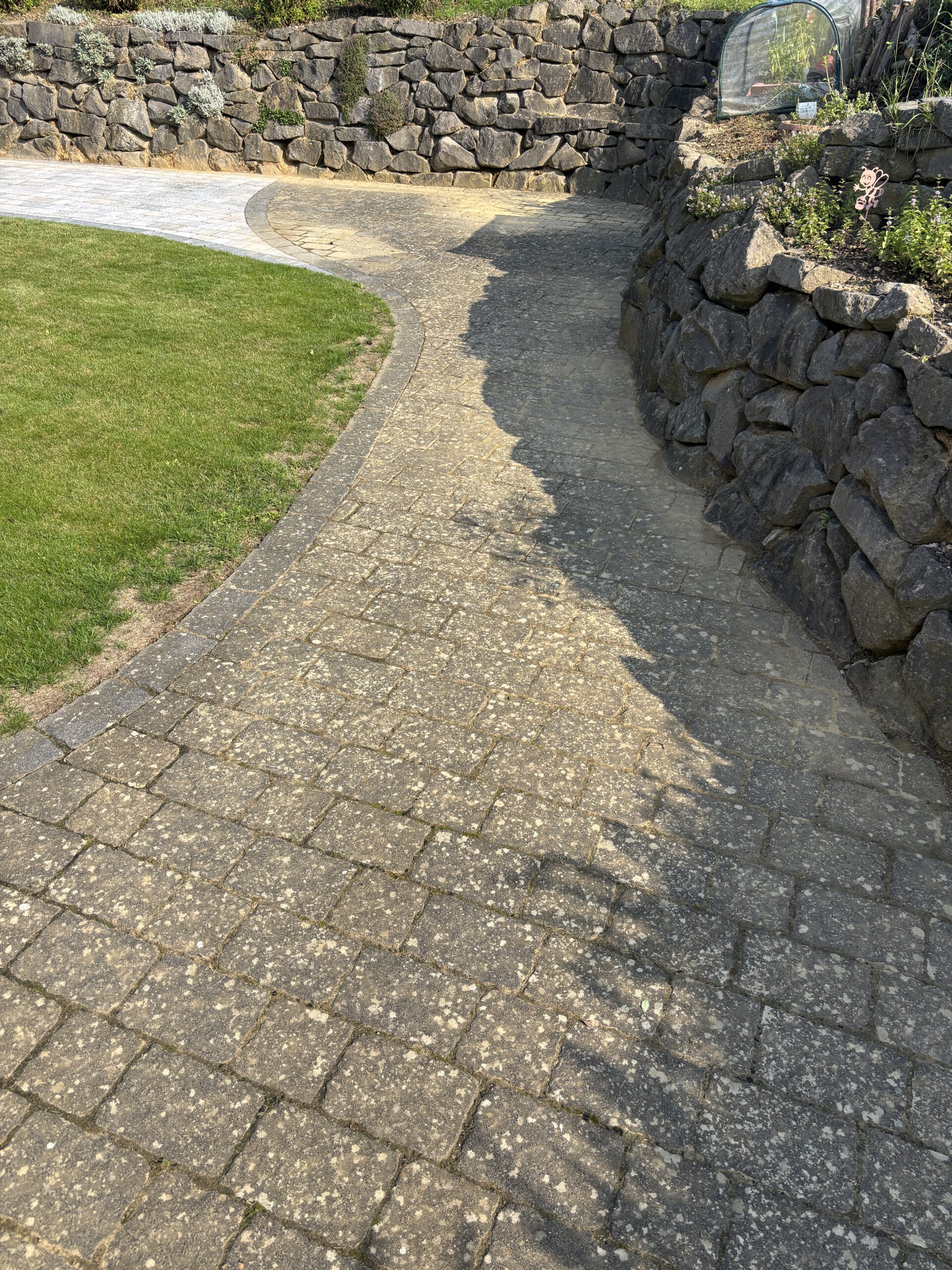 Einfahrten, Höfe und Gehwege fallen meist zuert ins Auge. Umso Ärgerlicher ist es wenn sie stark verunreinigt, vermoost und von Unkraut flächen befallen sind. Da Pflastersteine sehr offenporig und Rau sind bieten sie den perfekten Lebensraum für Pilze und Algen.